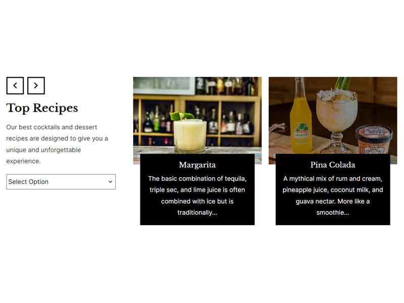Post Carousel with Top Cocktail Recipes Top Recipes Our best cocktails and dessert recipes are designed to give you a unique experience. helob h2 Hello 1 Hello world! Welcome to WordPress. This is your first post. Edit or delete it, then start writing!
